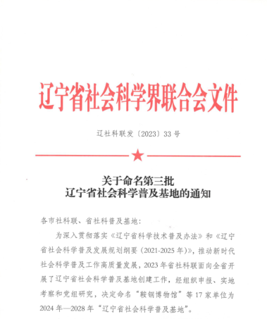 为深入贯彻落实《辽宁省科学技术普及办法》和《辽宁省社会科学普及发展规划纲要(2021-2025年)》,推动新时代社会科学普及工作高质量发展,经学校申请,由本溪市社会科学界联合会推荐,辽宁省社会科学界联合会党组研究,日前,我校“大学生创新创业社科普及基地”被认定为“辽宁省社会科学普及基地”。
