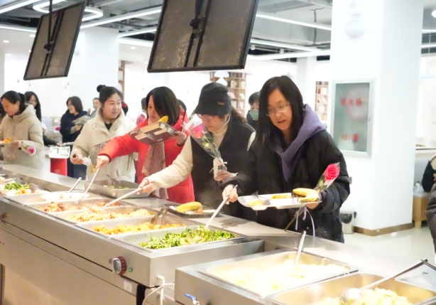 此外,8日中午,学校免费为女教职工提供餐食,校领导在食堂为所有女教职工发放鲜花,祝愿全校女教职工青春永驻、尽展芳华。