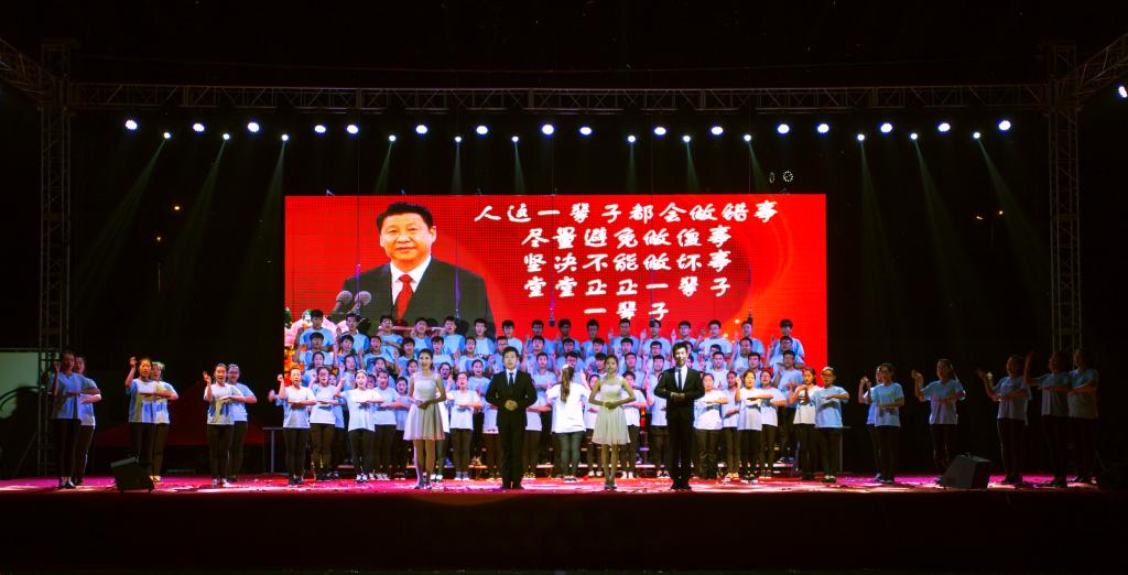 为践行社会主义核心价值观,创新大学生思想政治引领工程,展现我校多年来艺术教育成果,六月十日晚七时,我校于足球体育场盛大举办“盛世中国梦,奋进辽科人”大学生思想政治建设主题教育活动专场演出,党委书记赵文珍、校长马壮、党委副书记韩劲松、副校长吴国玺、丛树林、纪委书记邓献宇、副校长相玉红及我校中层干部出席此次活动。