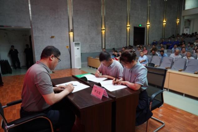李卫民代表学校与各二级单位现场签订了2023年度平安校园、消防安全、安全生产责任书。宣读了2022年度获评“先进个人”名单,并为获奖代表颁发证书和奖品。