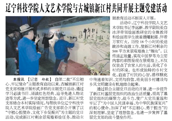 辽宁辽宁科技学院人文艺术学院与古城镇新江村共同开展主题党建活动发表在《桓仁县报》2019年10月31日第2版