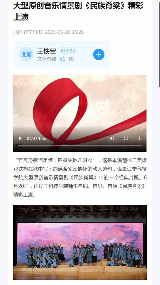 【辽宁日报·北国号】大型原创音乐情景剧《民族脊梁》精彩上演-博天堂在线开户