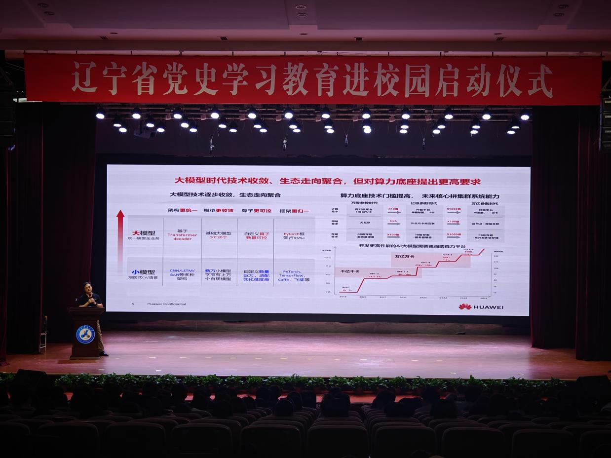 华为沈阳人工智能计算中心的姜昊、李玉元两位专家,为同学们作了题为《发展智能新产业、打造数字新基建》的报告。华为沈阳人工智能计算中心,作为东北首个节点接入中国算力网络,采用昇腾ai全栈技术,获批成为国家新一代人工智能公共算力开放创新平台。报告中,专家们为同学们分享了人工智能最新的发展趋势,以及基于昇腾全栈自主可控技术的大模型应用案例等,为同学们对未来的学业规划和职业发展指明了方向。