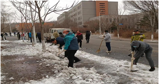 寒假期间学校的积雪覆盖了道路,给校园交通带来了诸多不便,为贯彻落实好学校学雷锋活动常态化工作要求,广泛深入开展好学习雷锋精神活动,3月4日,机关党总支、后勤党总支组织全体党员开展了“传承雷锋精神,奉献服务师生”的主题党日活动。