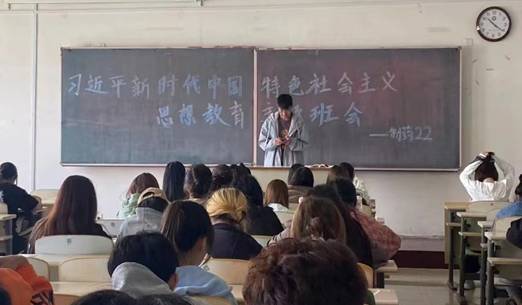 辅导员胡雁波老师围绕“学习党的二十大精神”“牢牢把握总要求”“根本任务”等方面为环境20、制药21、能化22班的同学进行培训。应化20班班会由团支书马玉婧同学主持,分别从习近平新时代中国特色社会主义思想的核心内容、基本方略及新时代十三个方面的历史性成就等方面进行讲解。各班班会以贴近学生的方式,教育引导广大青年对习近平新时代中国特色社会主义思想有更深入的理解,增强责任感和使命感。